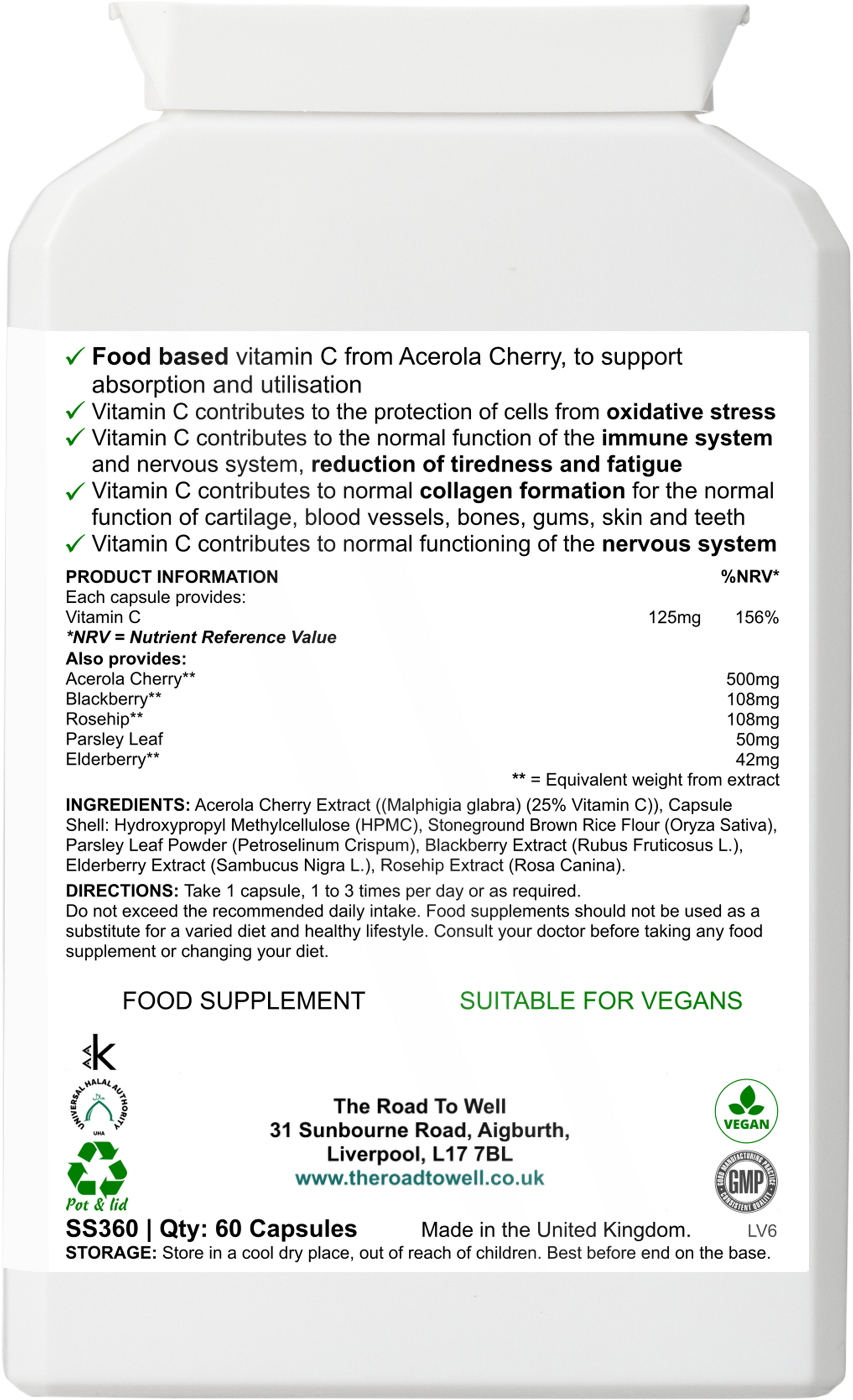 A gentle food form vitamin C supplement, derived from fruits, berries and herbs – vitamin C from Mother Nature. These food form ingredients are more readily absorbed and utilised by the body than synthetic vitamin C (ascorbic acid).