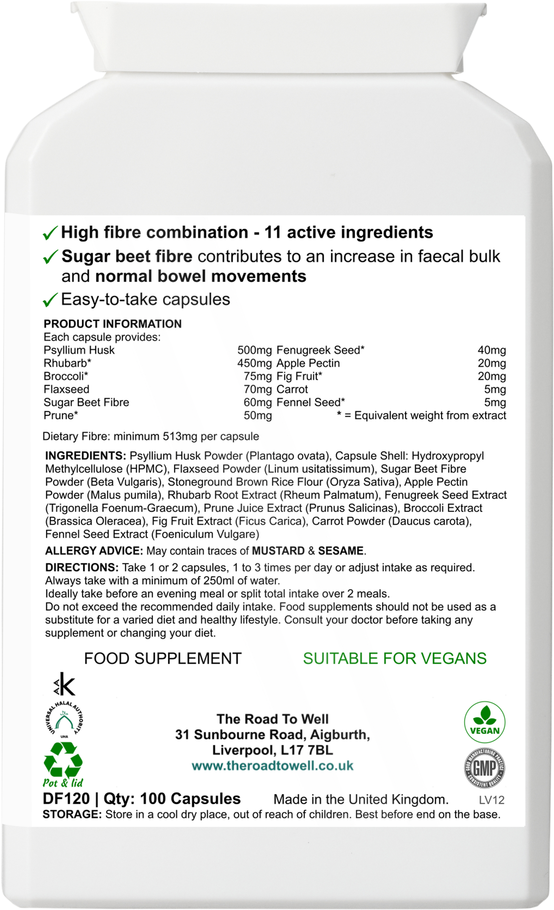 - Over 500mg of dietary fibre per capsule