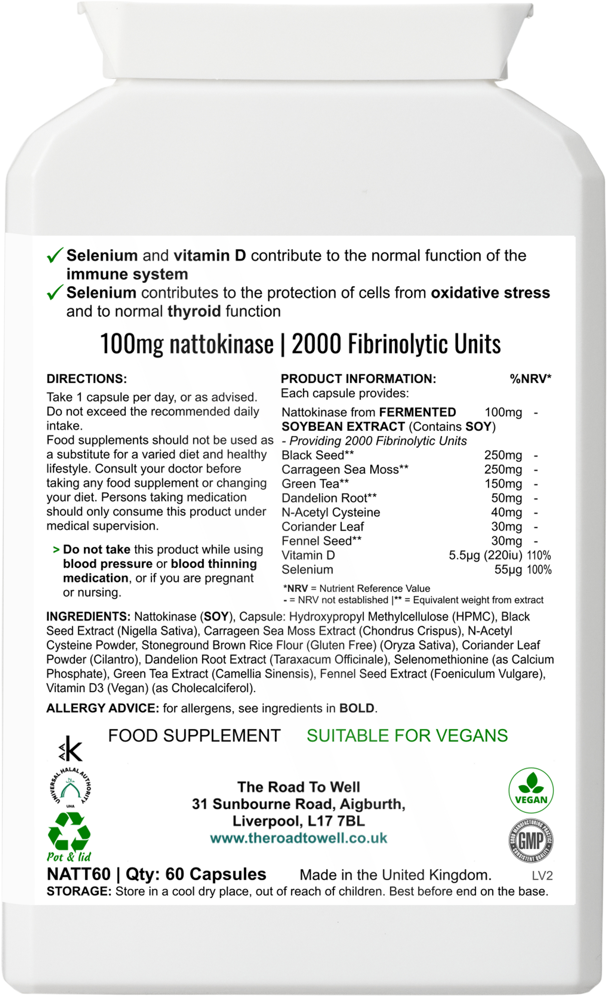 A high-strength nattokinase formulation (100mg and 2000 Fibrinolytic Units), with added botanicals and nutrients.