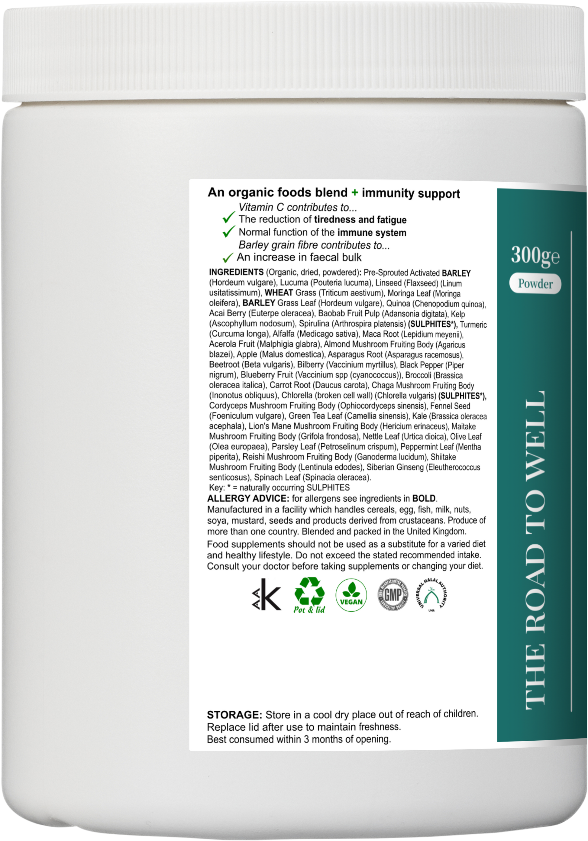 A high-fibre organic superfood shake, with a unique blend of over 35 nutritious greens, algae, vegetables, fruits, berries, herbs, mushrooms and seeds in each serving.